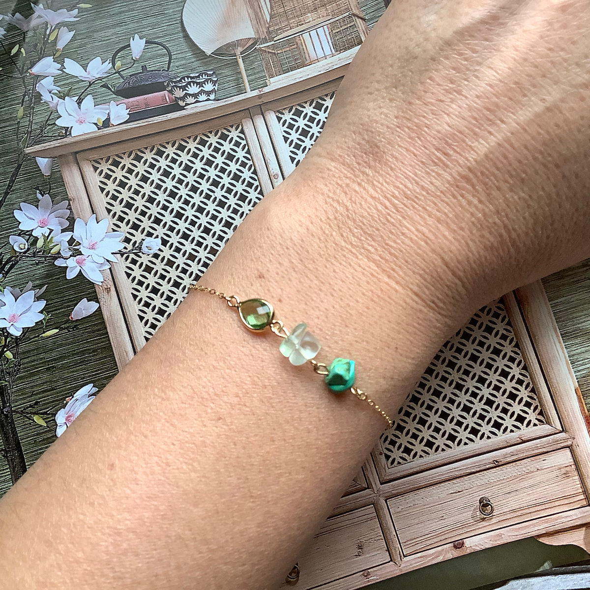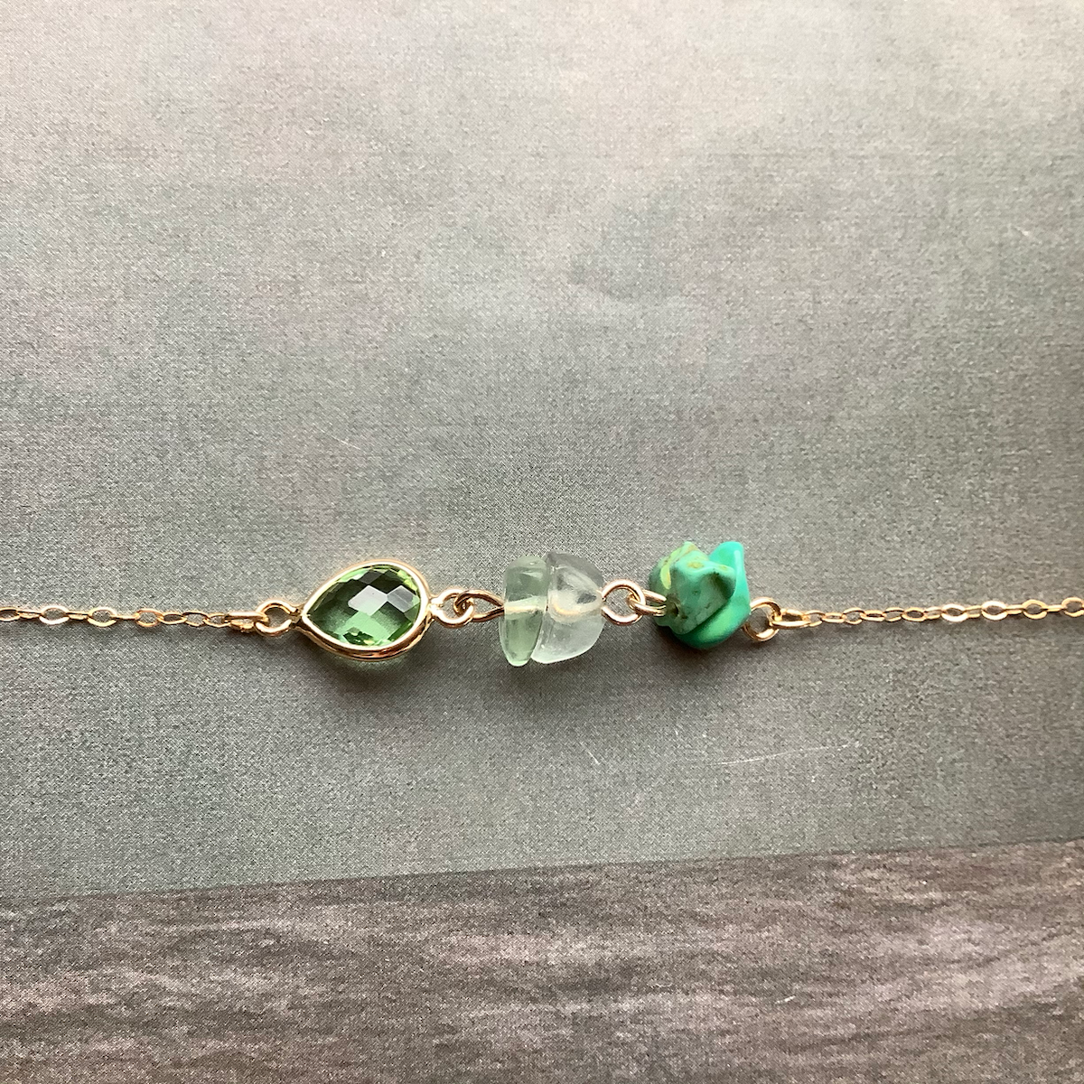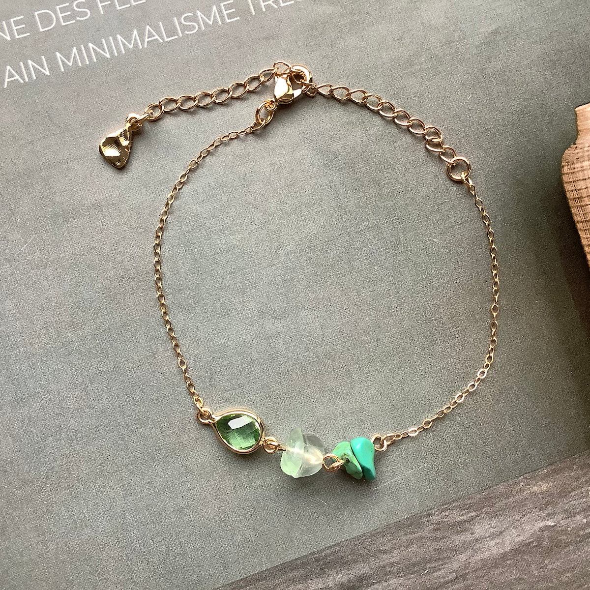 18K gold plated chain, natural fluorite gemstone, natural green turquoise, high quality drop pendant.