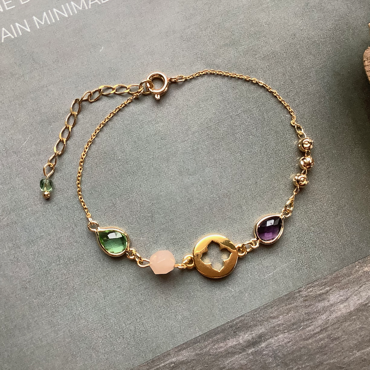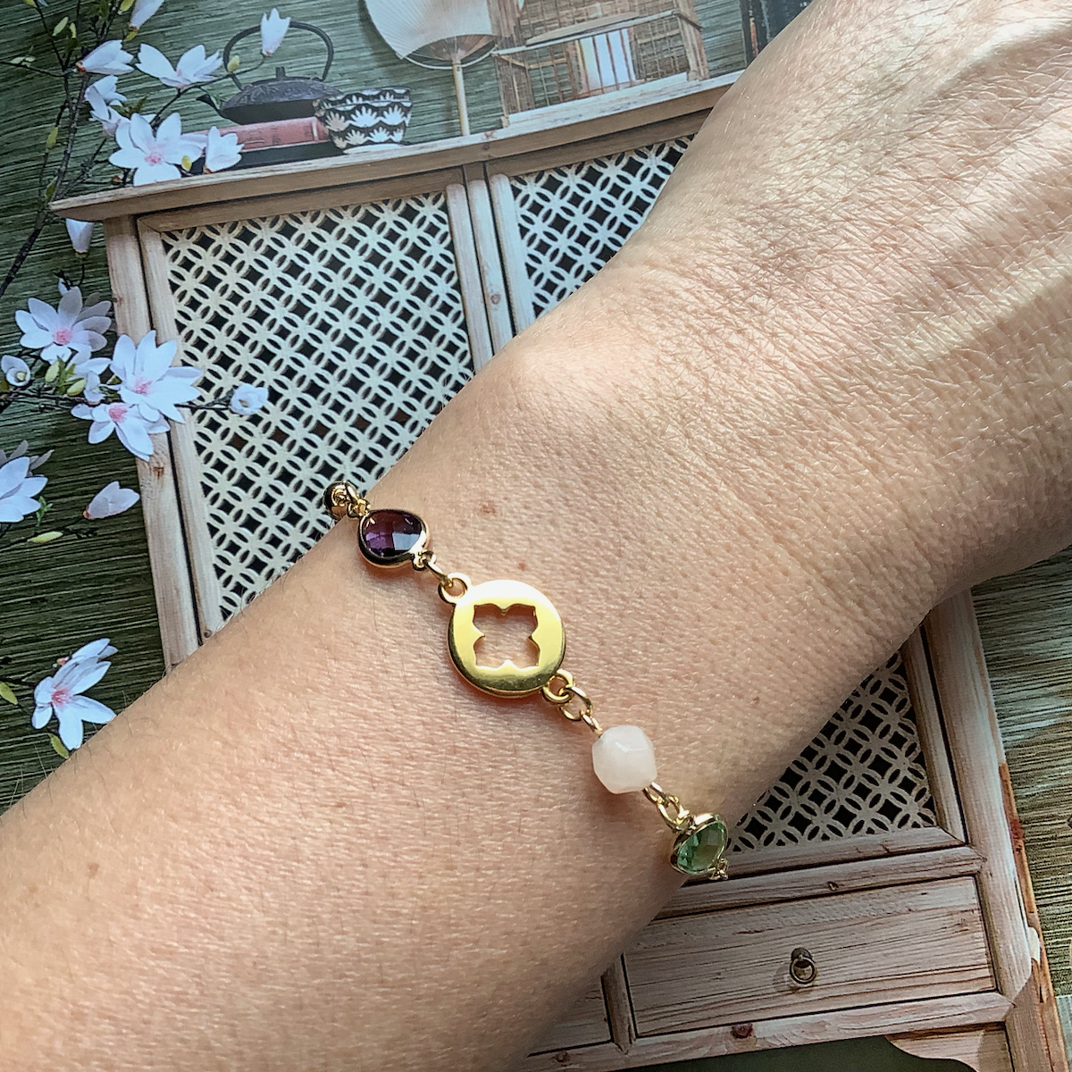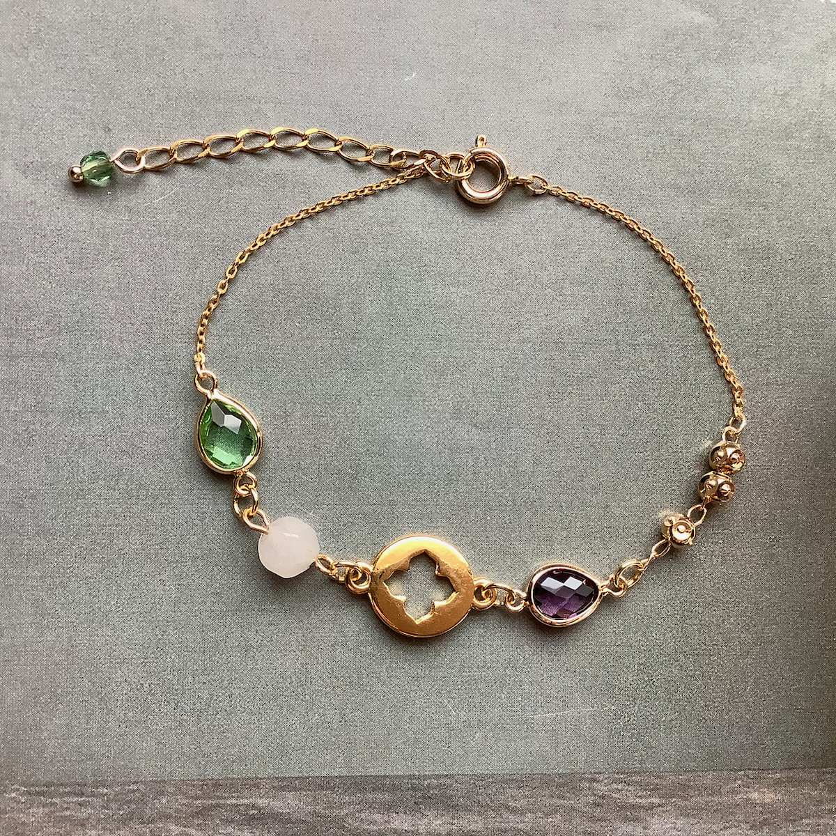 24K Indian Cross Gemstone Purple Green Drop Bracelet