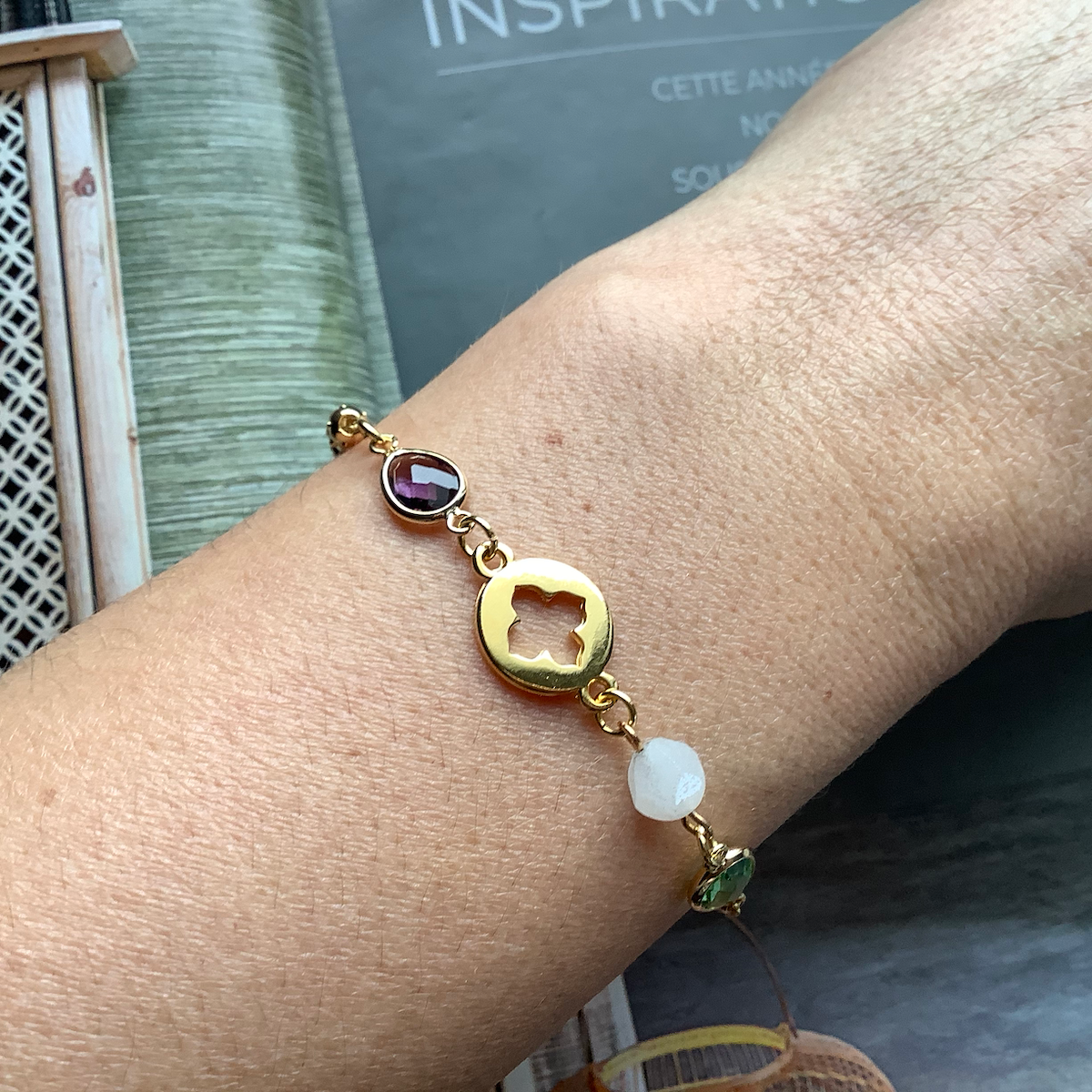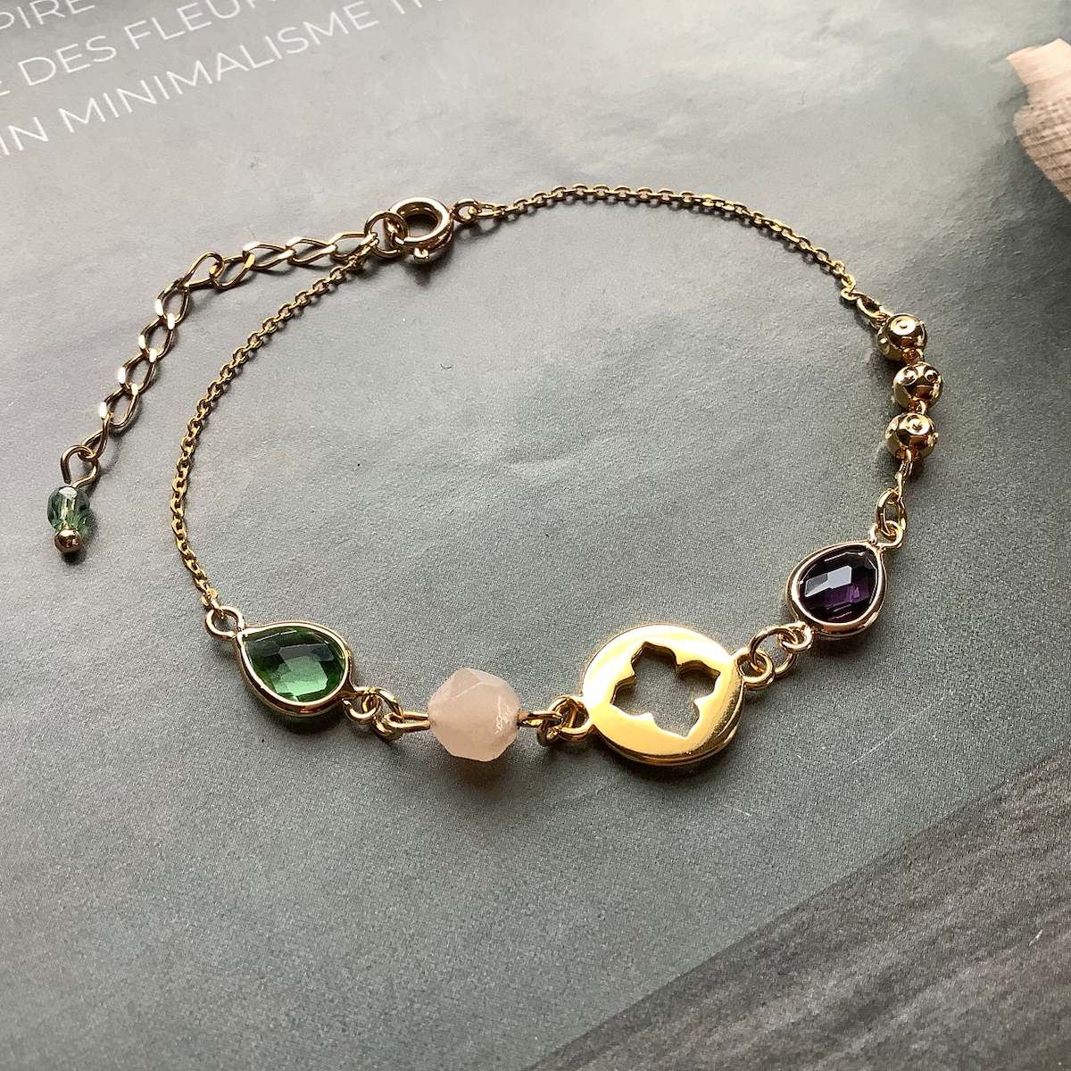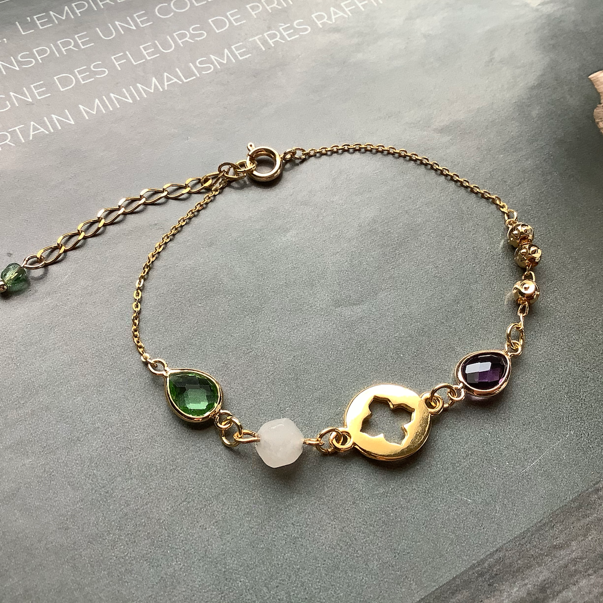 24K Indian Cross Gemstone Purple Green Drop Bracelet