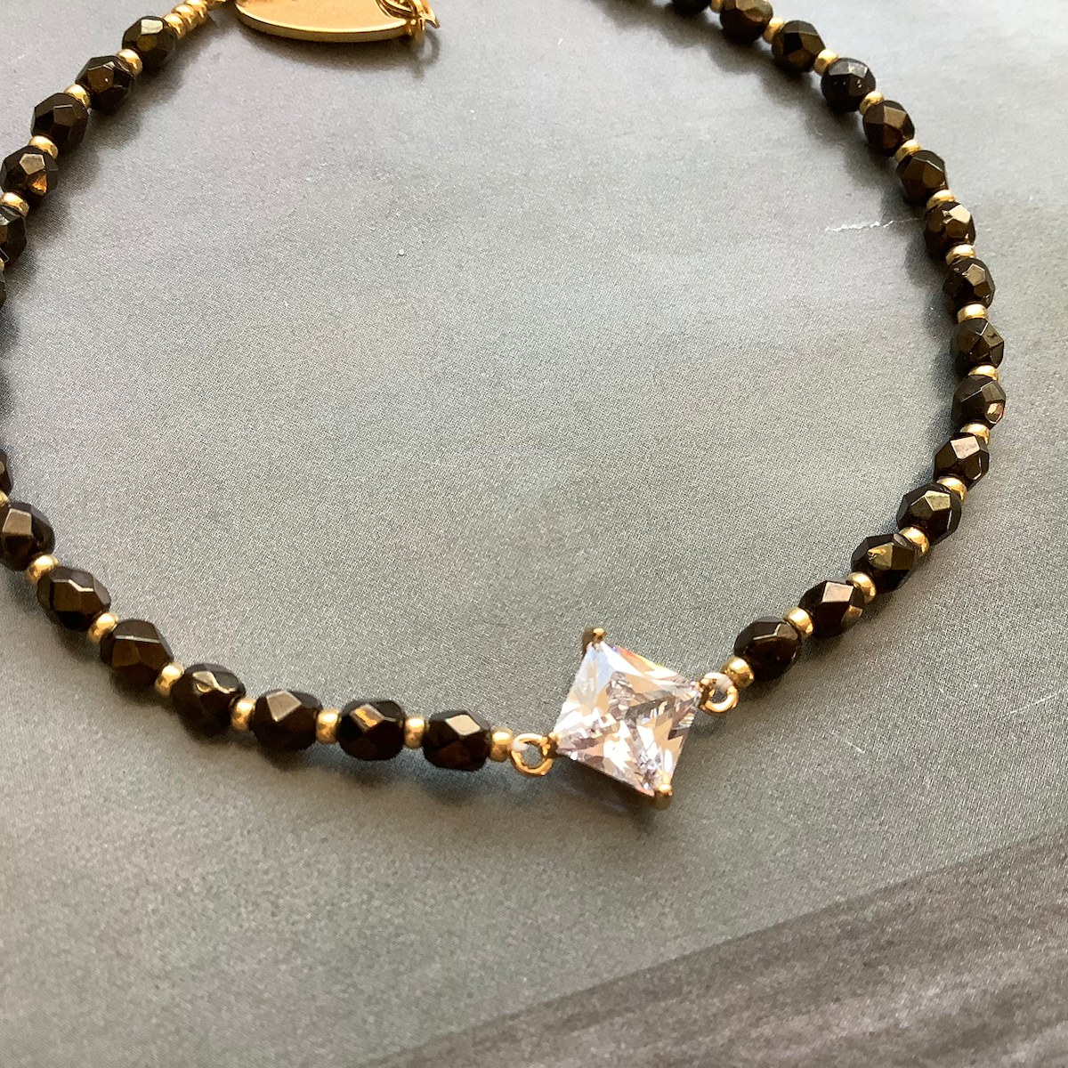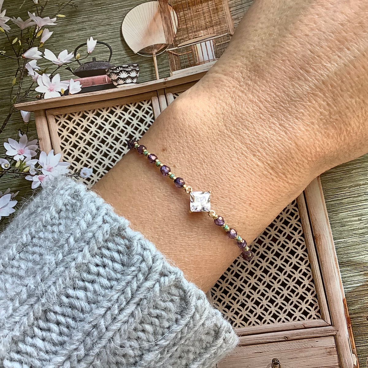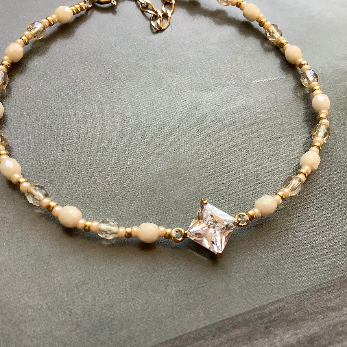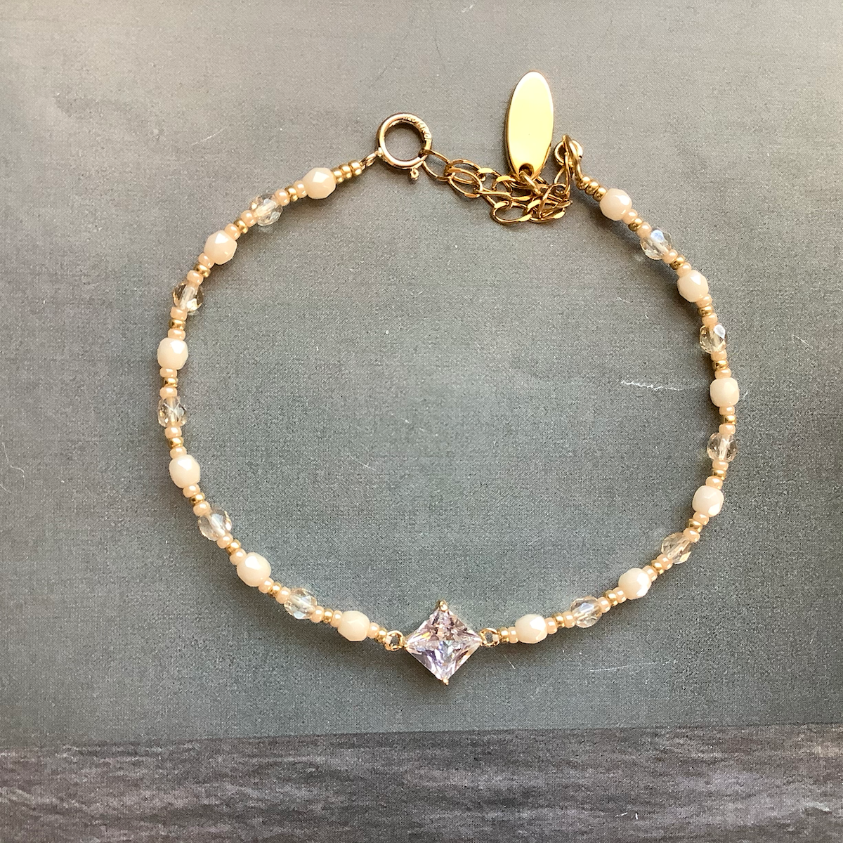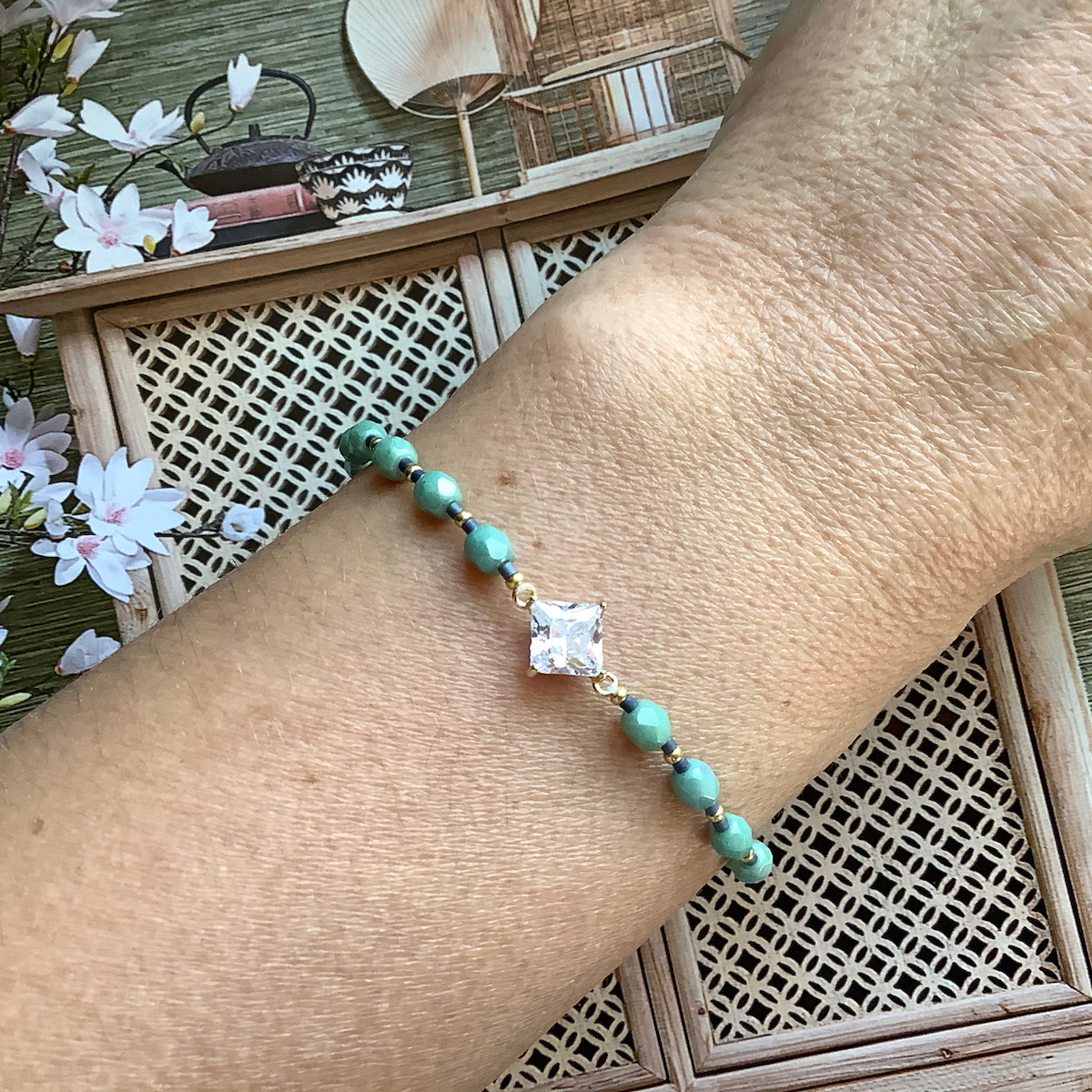 Japanese beads, 24K gold plated pendant with zircon stone.