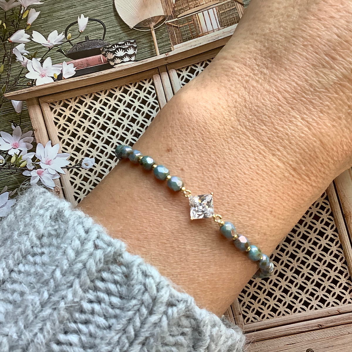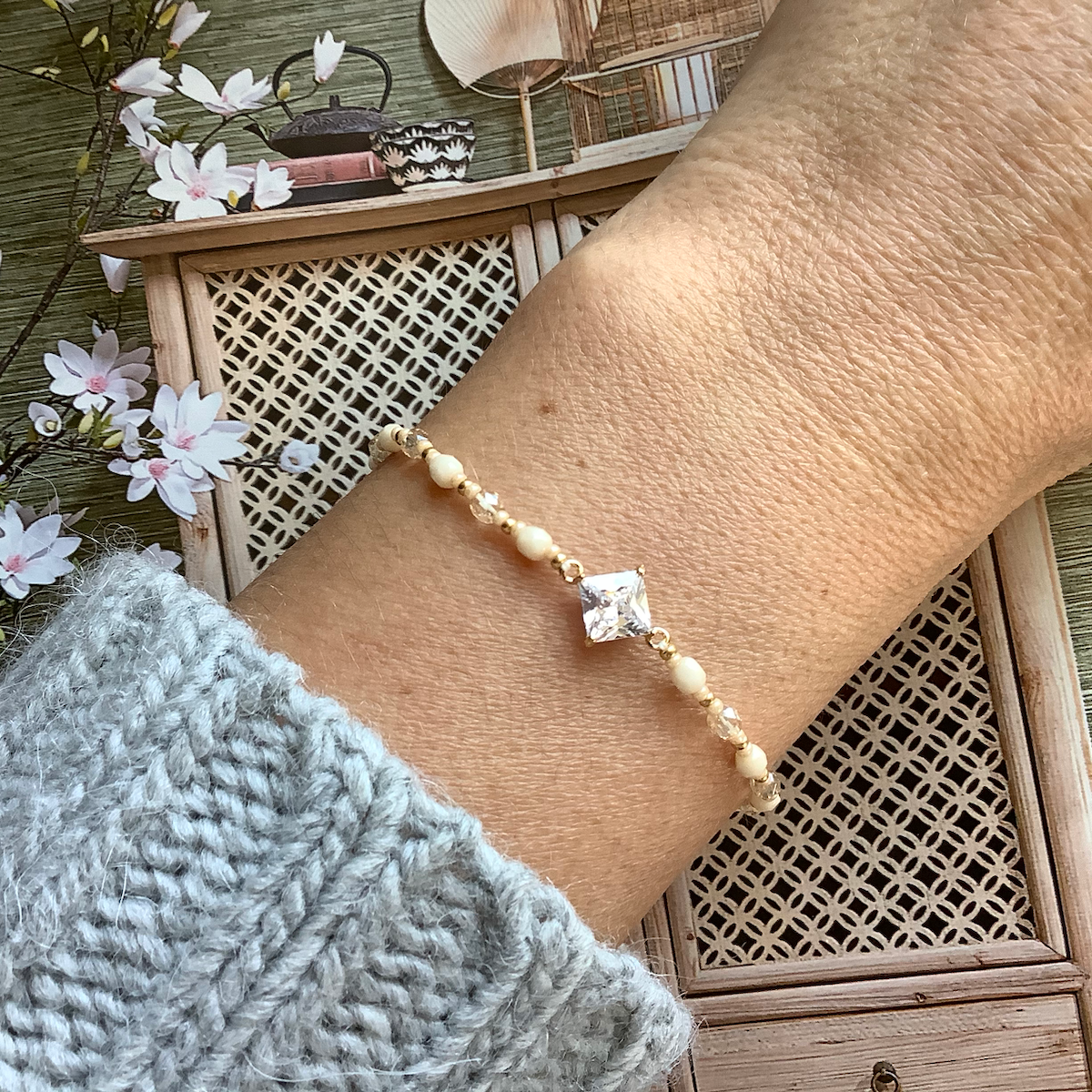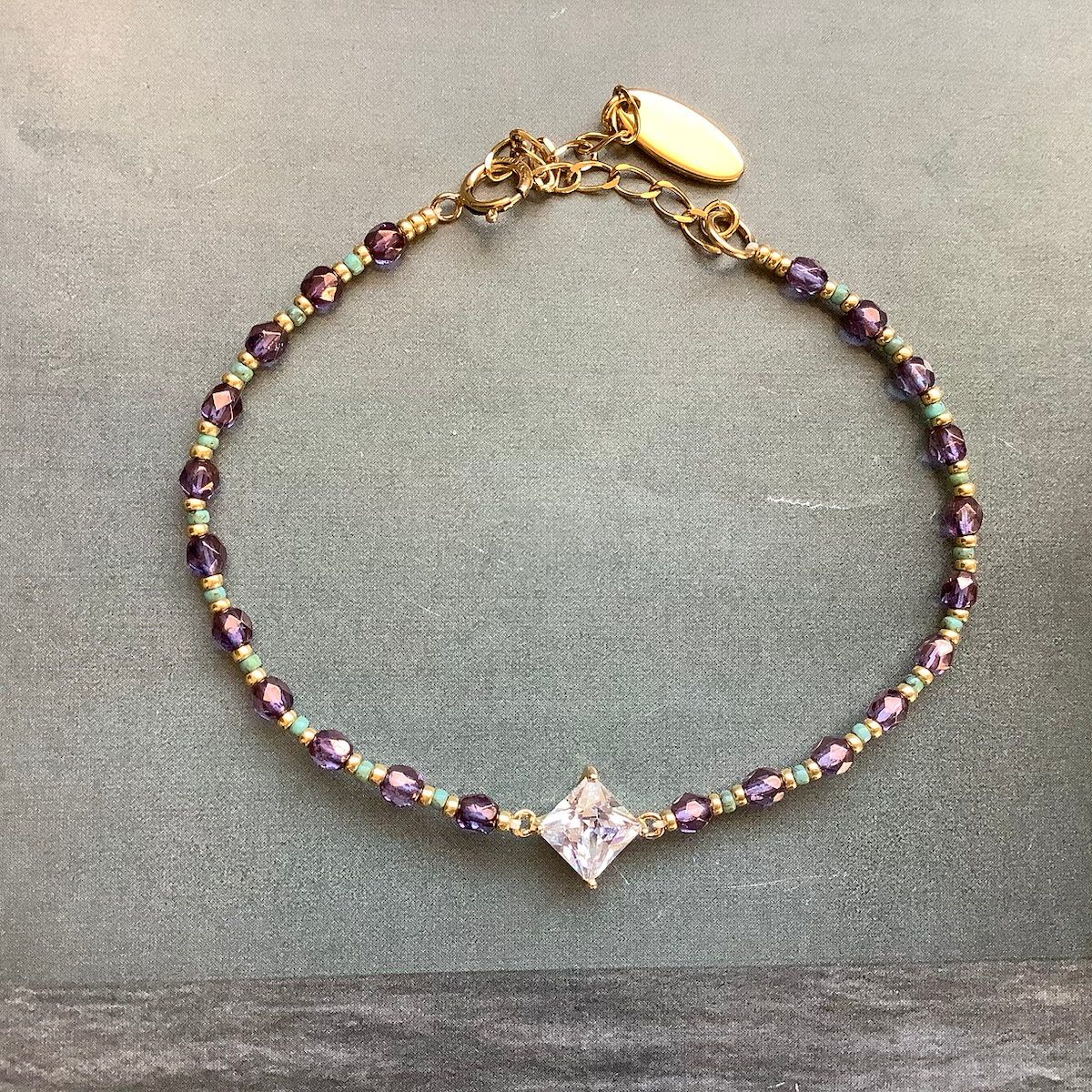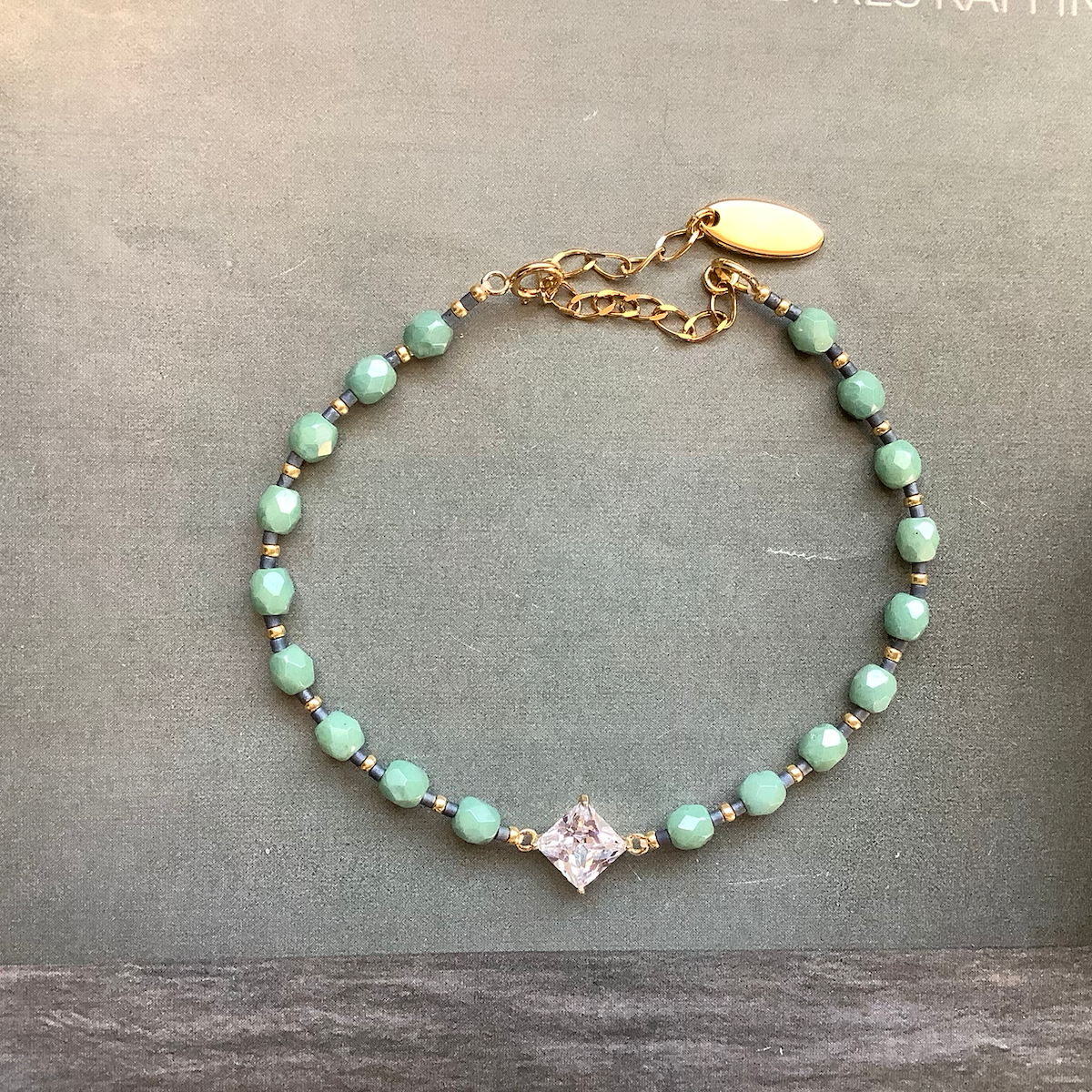 Japanese beads, 24K gold plated pendant with zircon stone.