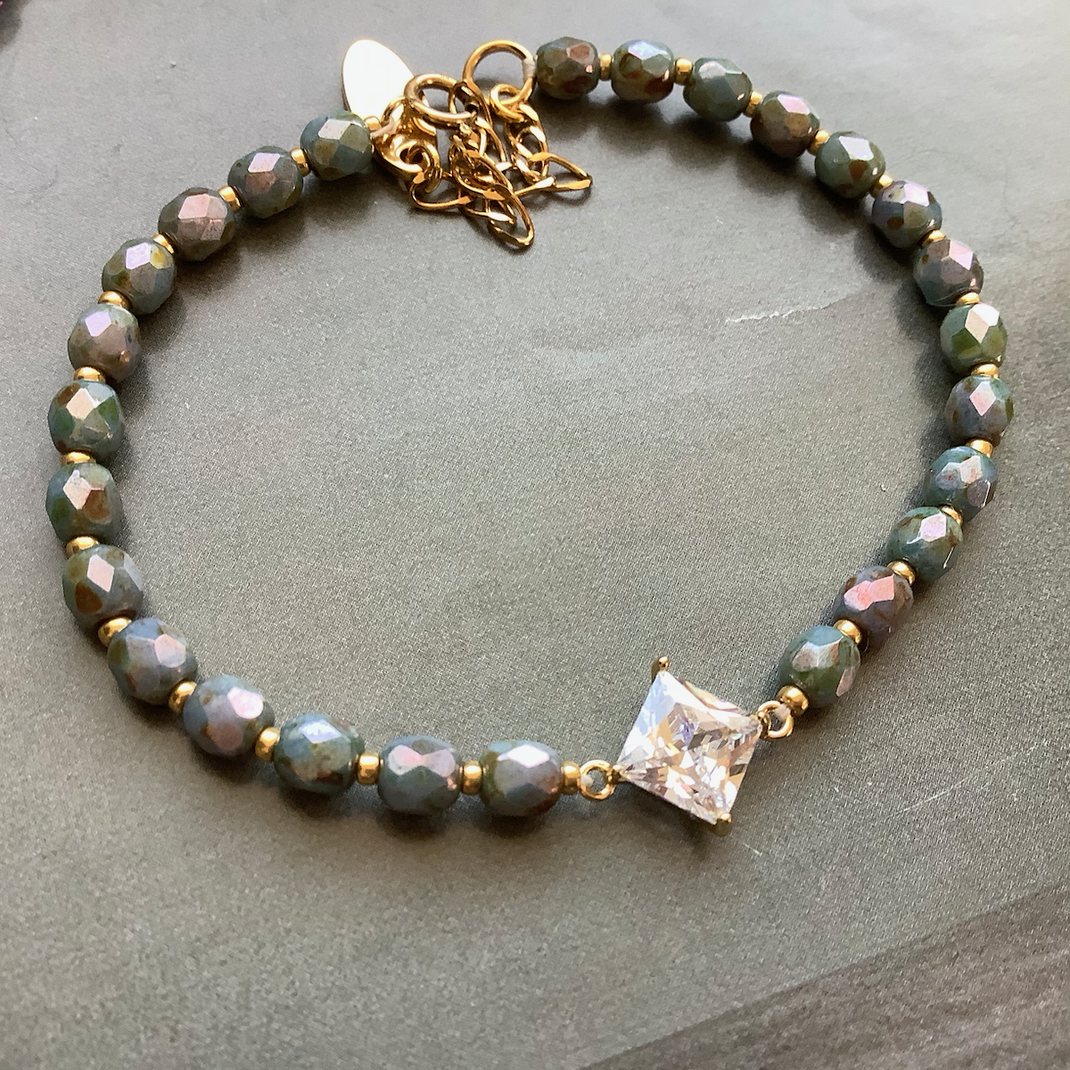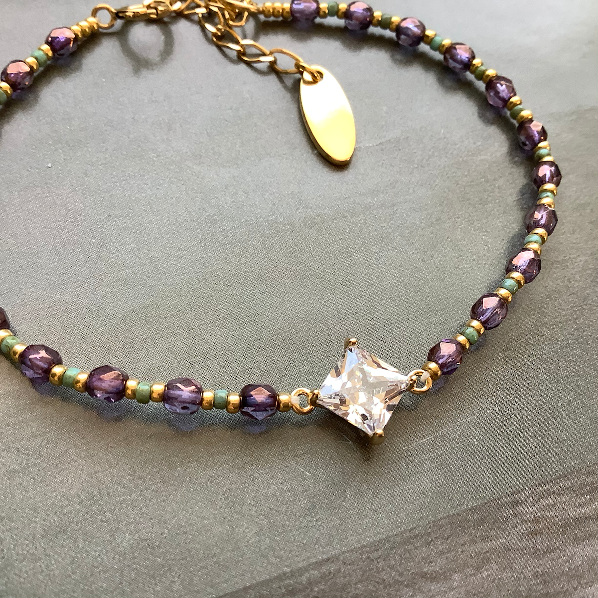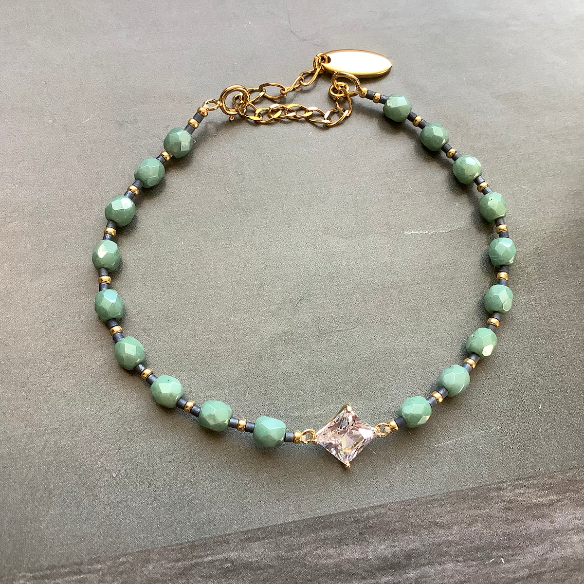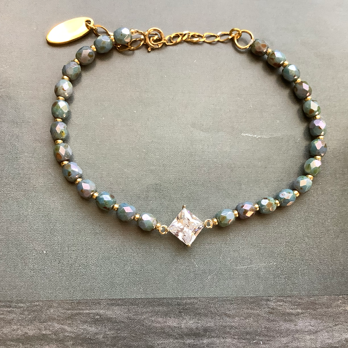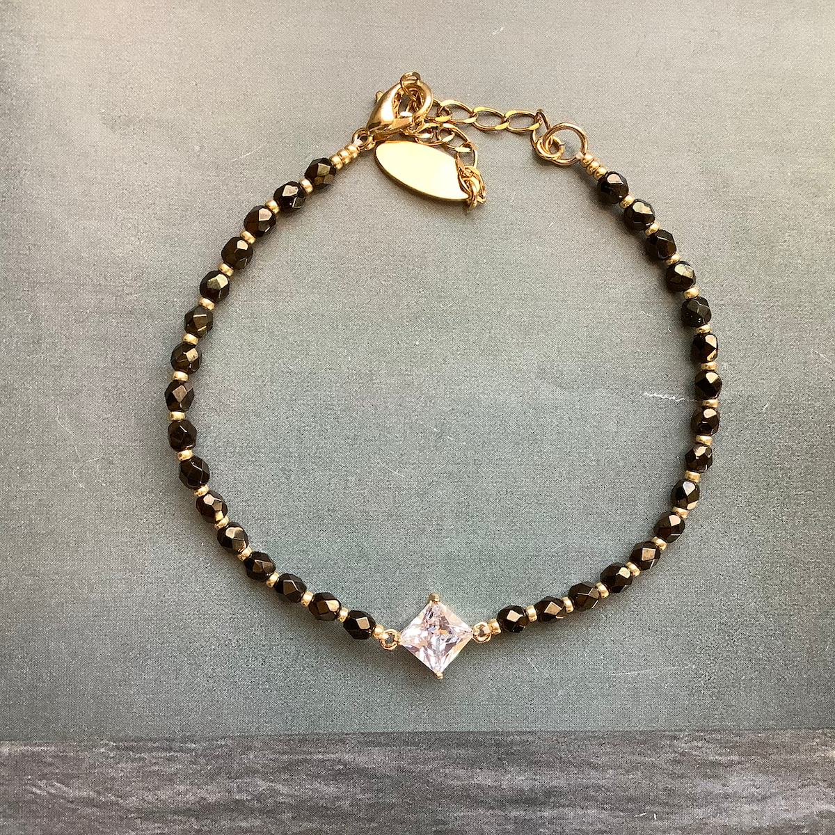 Japanese beads, 24K gold plated pendant with zircon stone.