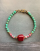 Natural sea sediment round green and rose beads, 24K gold plated bead spacers, high quality clasp.