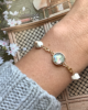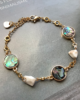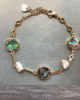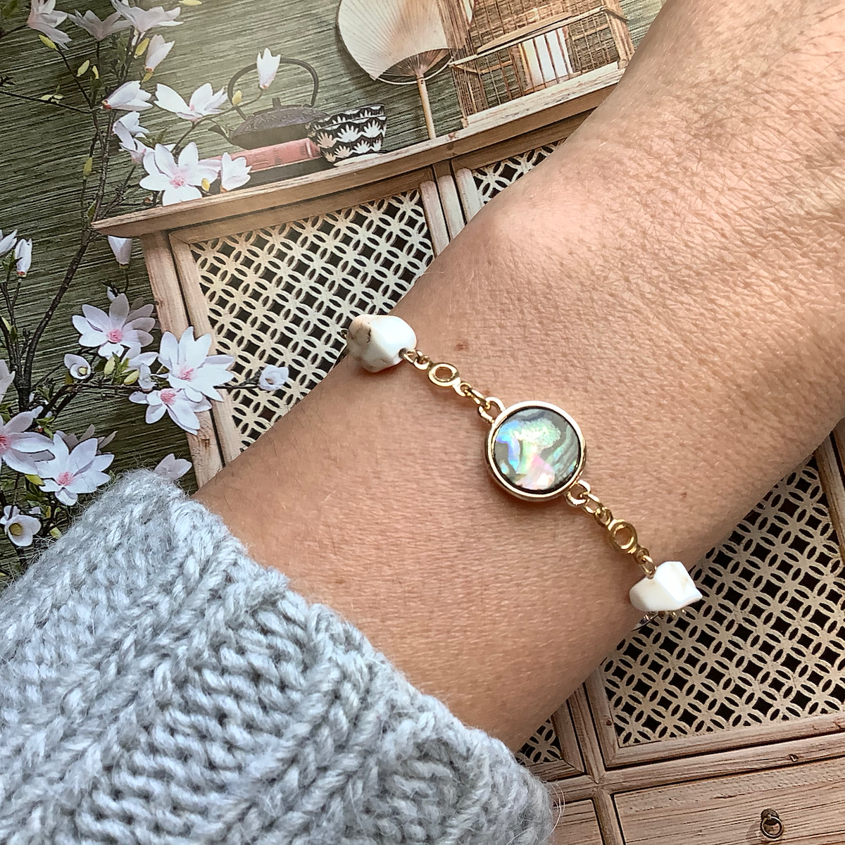 Stainless steel chain, natural blue abalone pendants, natural irregular white turquoise gemstones, stainless steel clasp and extension chain.