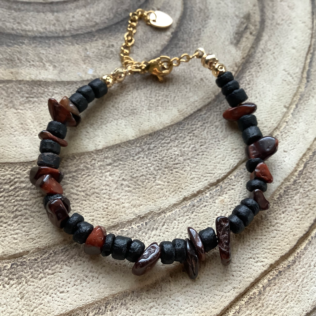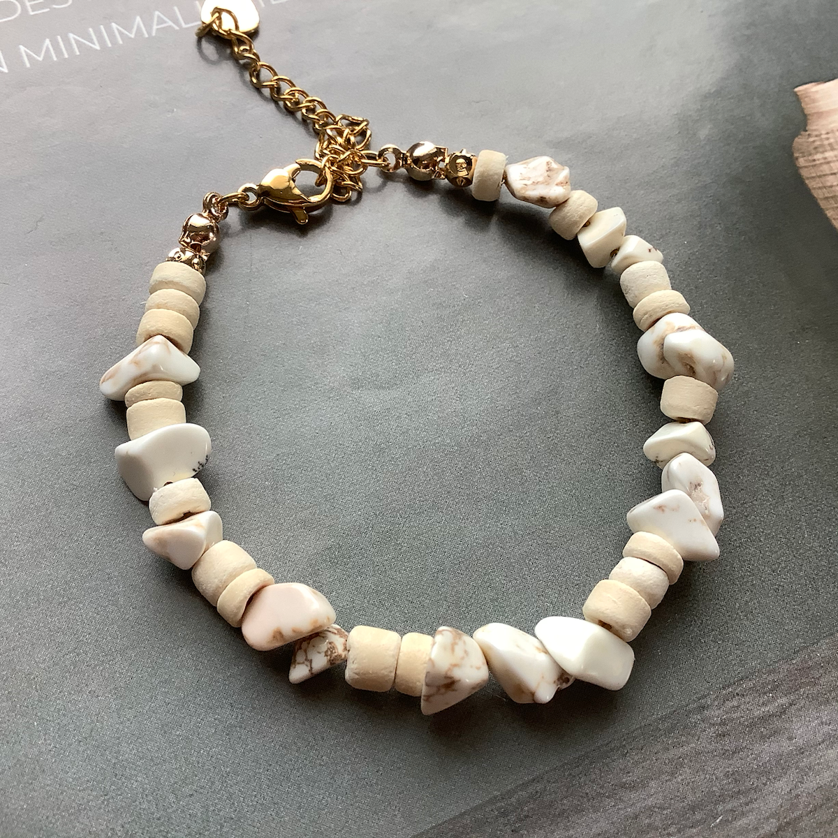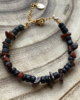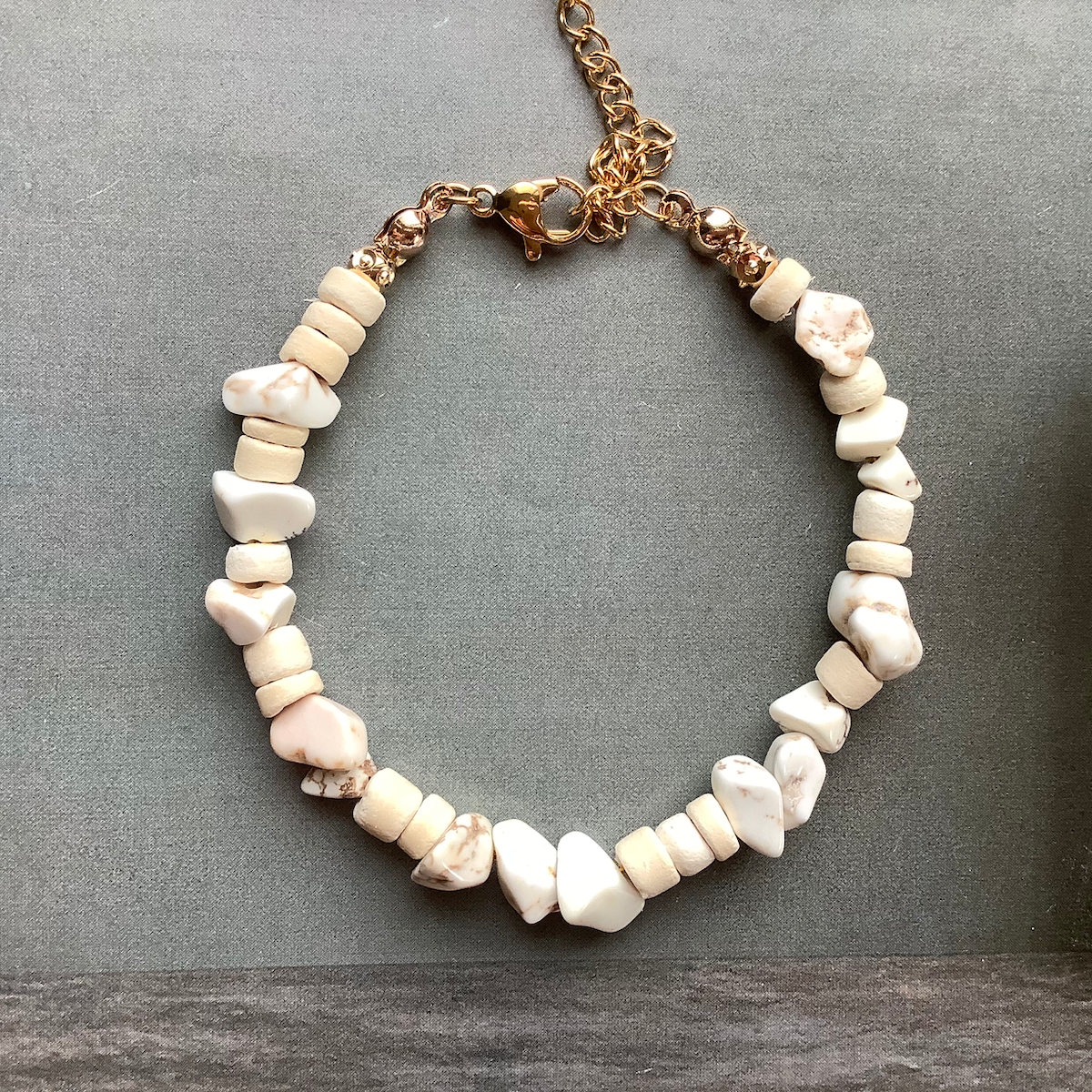 Natural coconut tree beads, irregular natural lapis kyanite opal quartz gemstone, 24K gold plated beads spacers, stainless steel wire, clasps and extension chain.