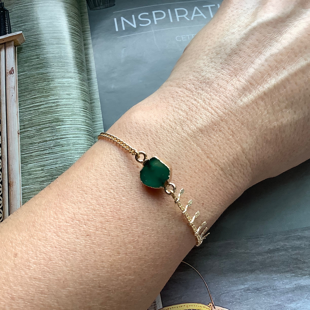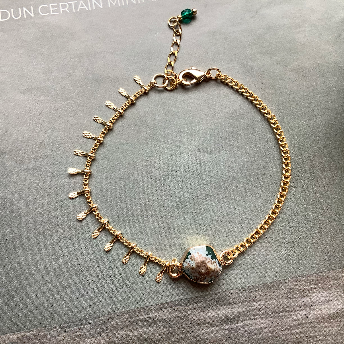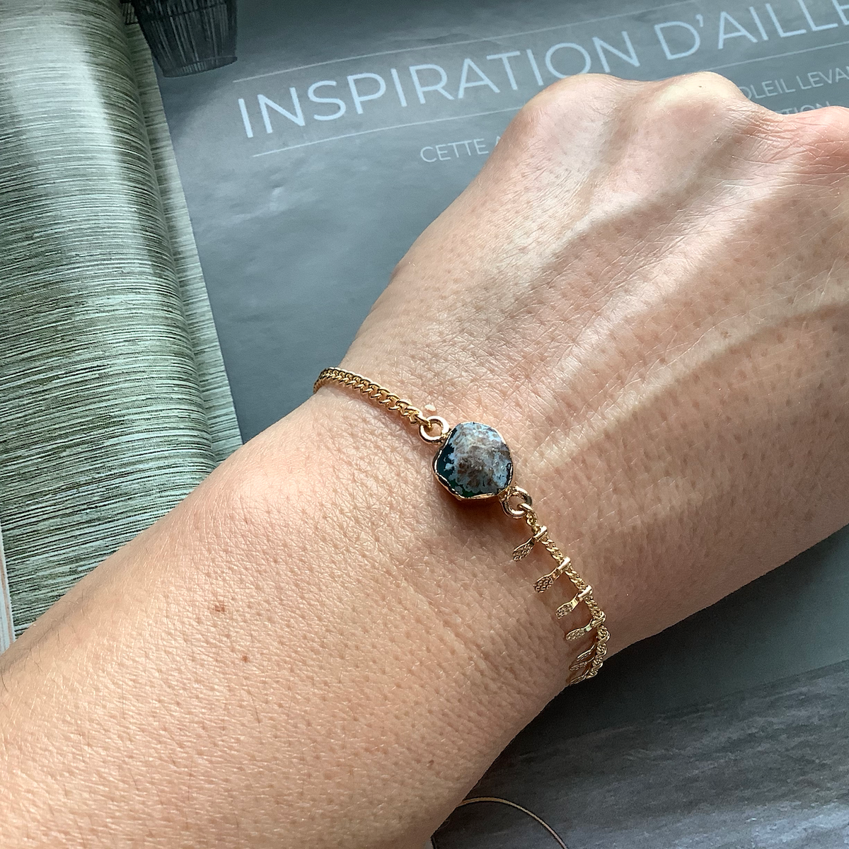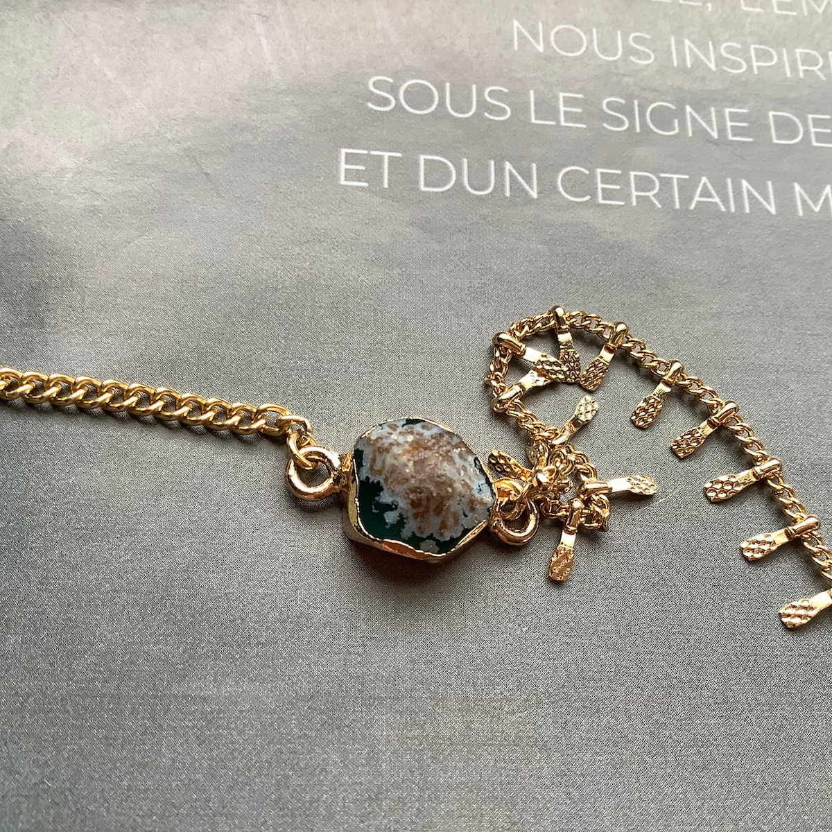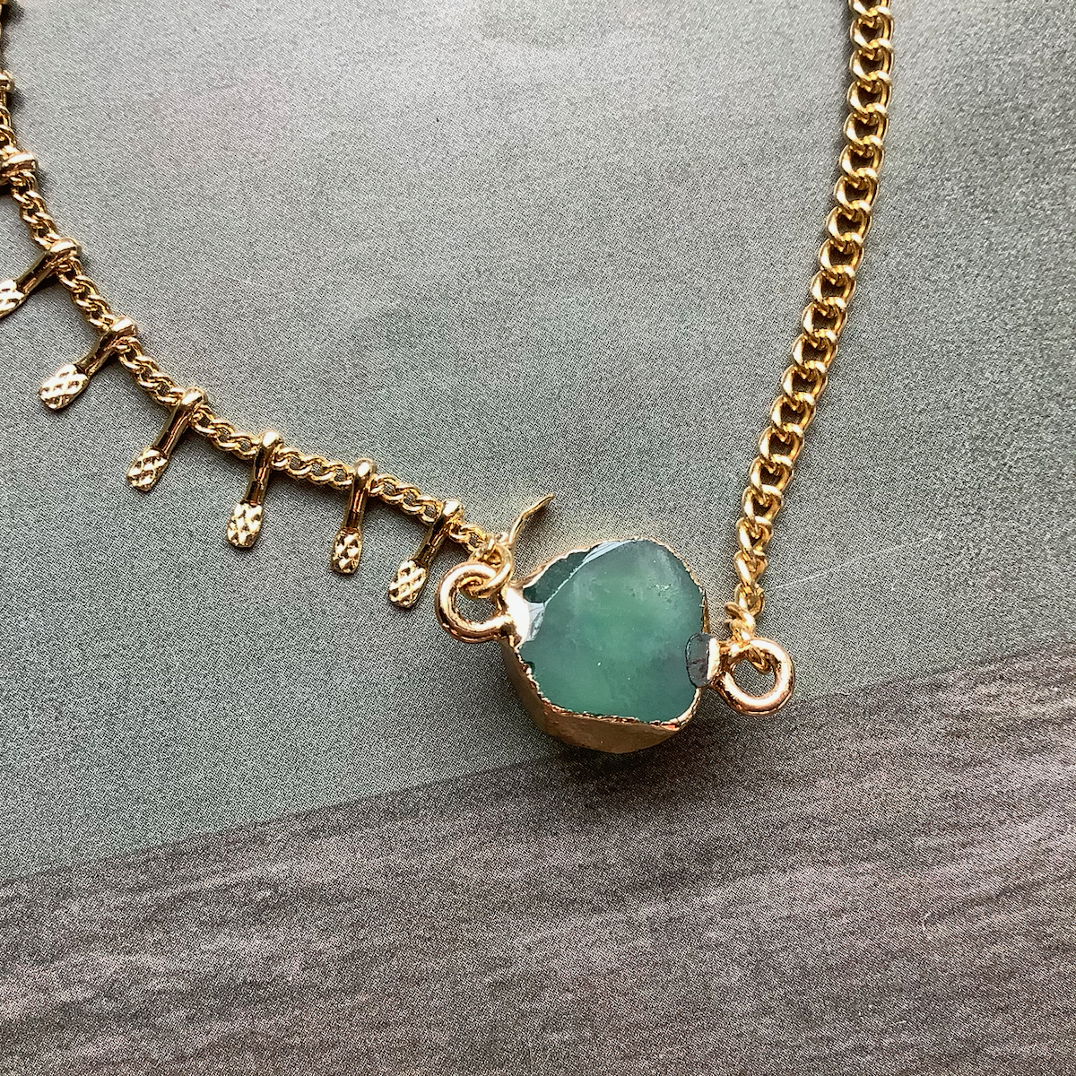 24K gold plated chains, natural stone double-sided irregular geometry pendant.