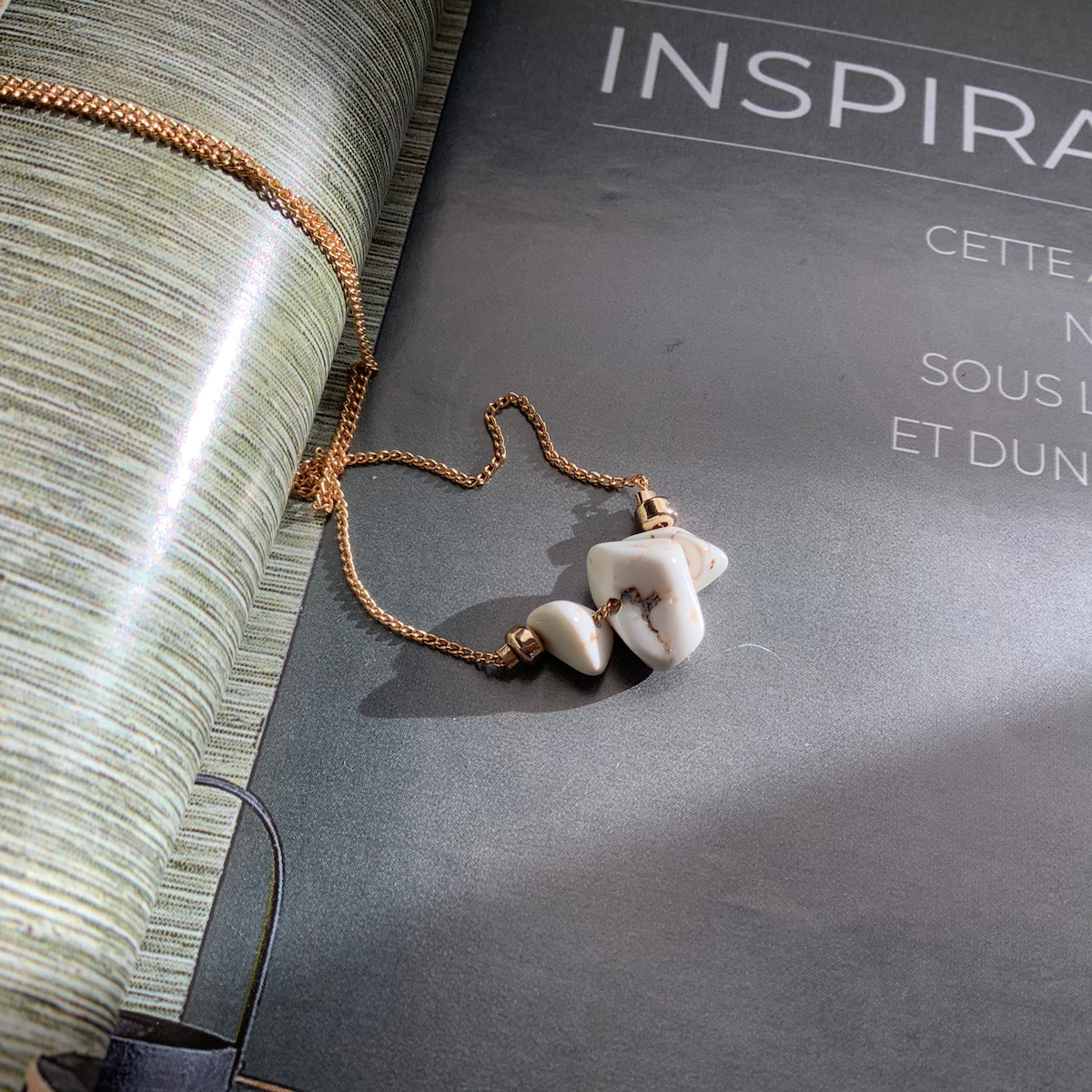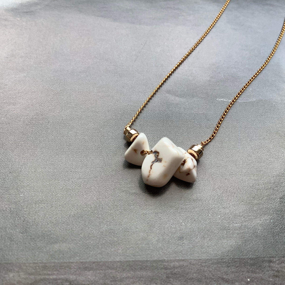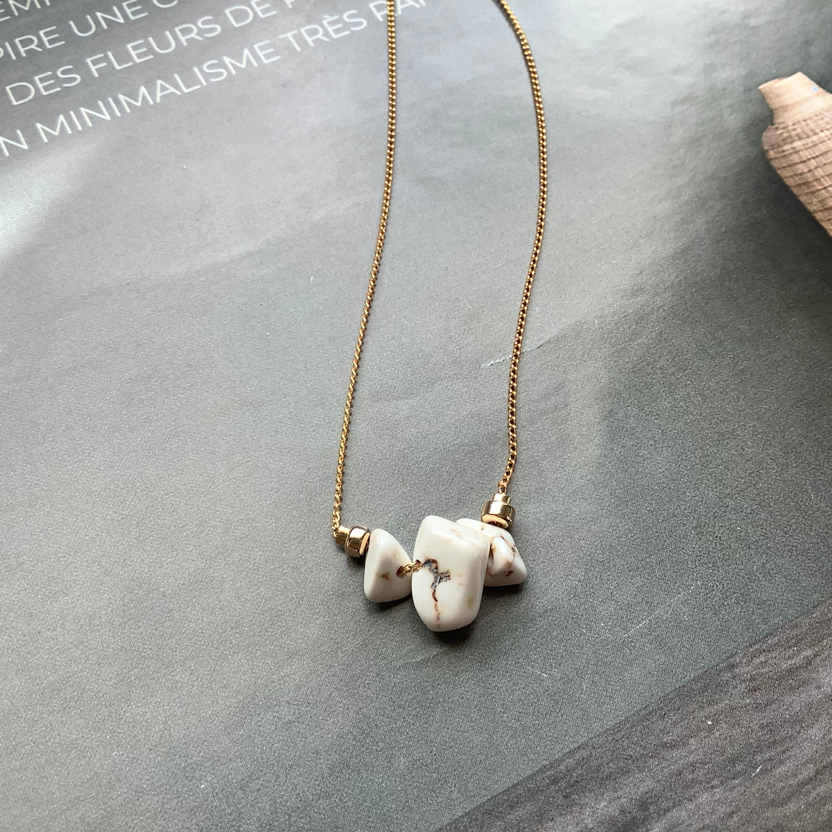 18K gold plated brass 1mm chain, white turquoise gemstones.