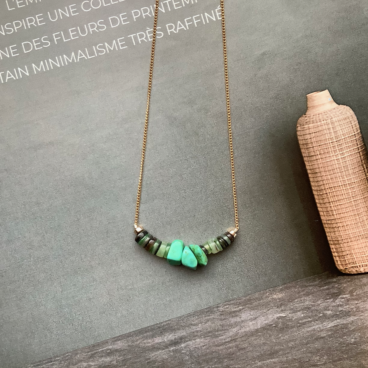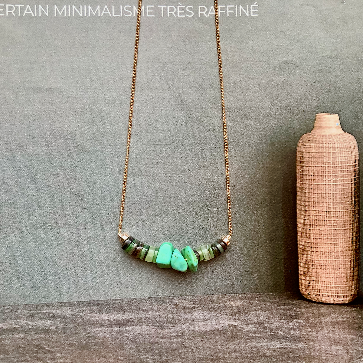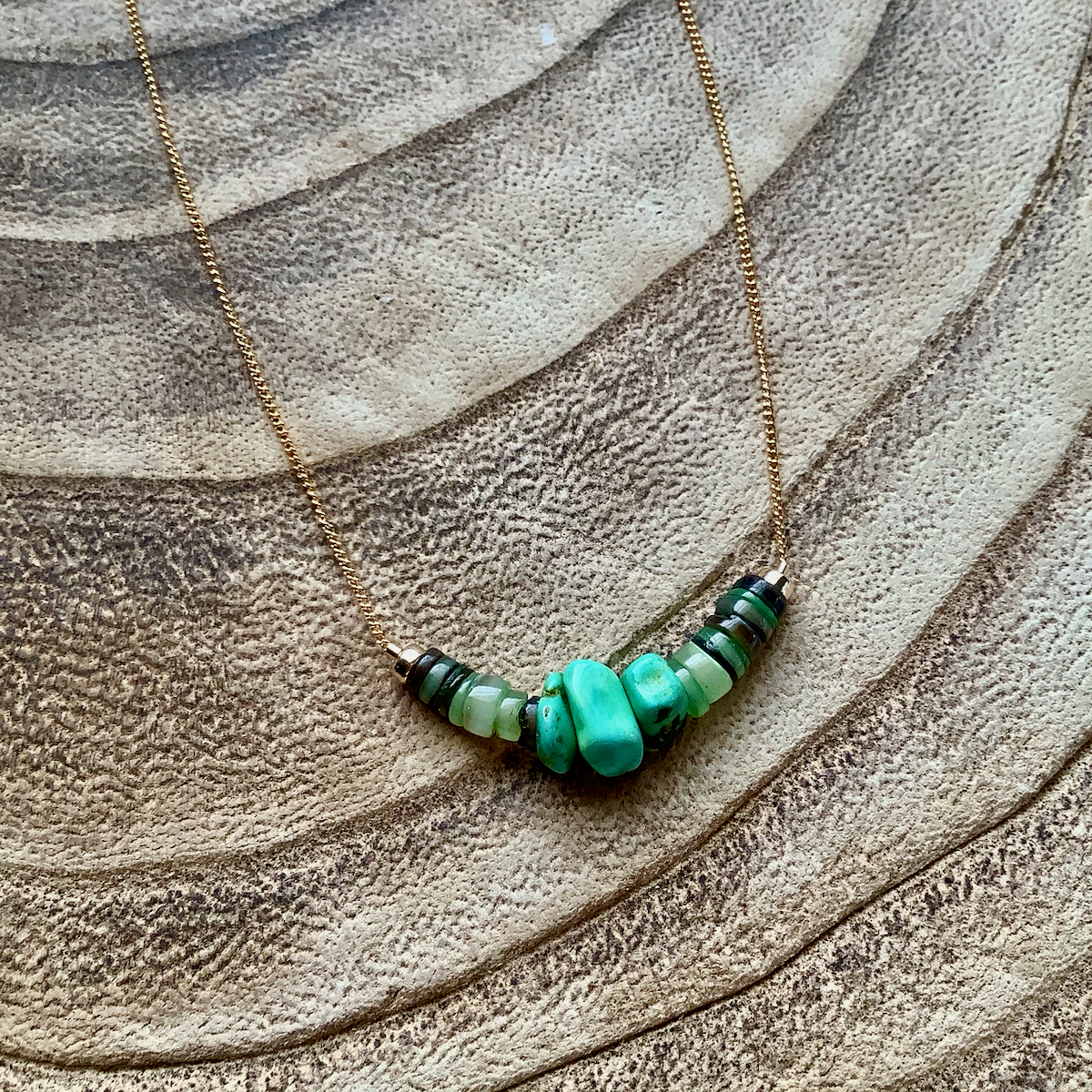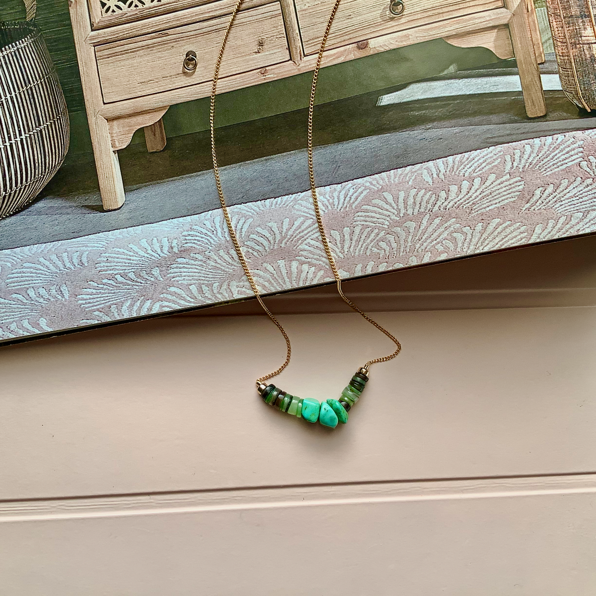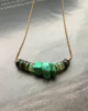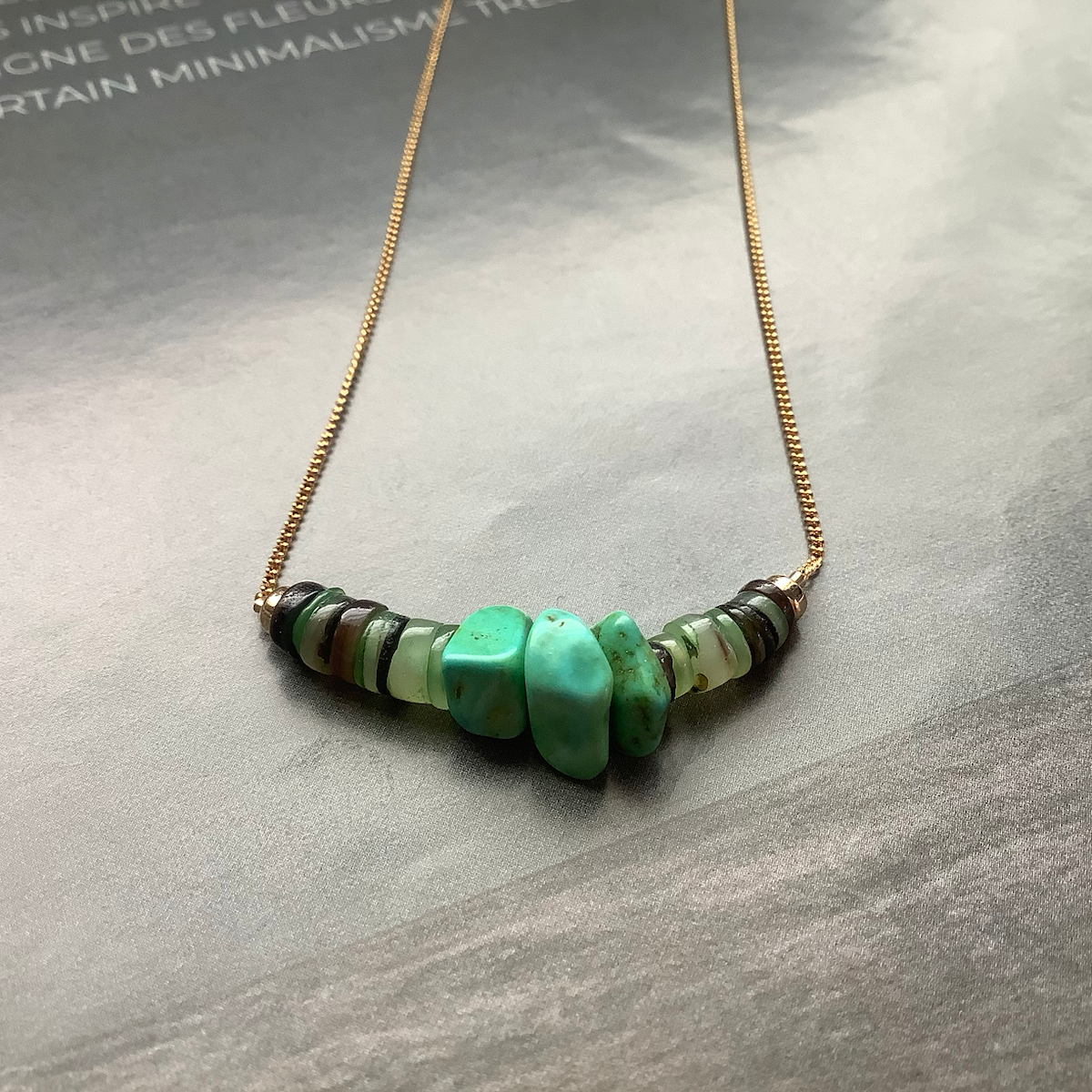 18K gold plated chain, natural seashell beads, natural lapis kyanite quartz gemstones.