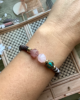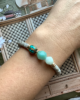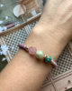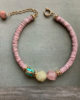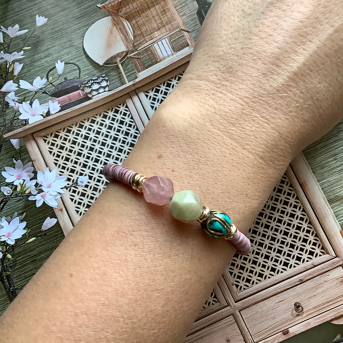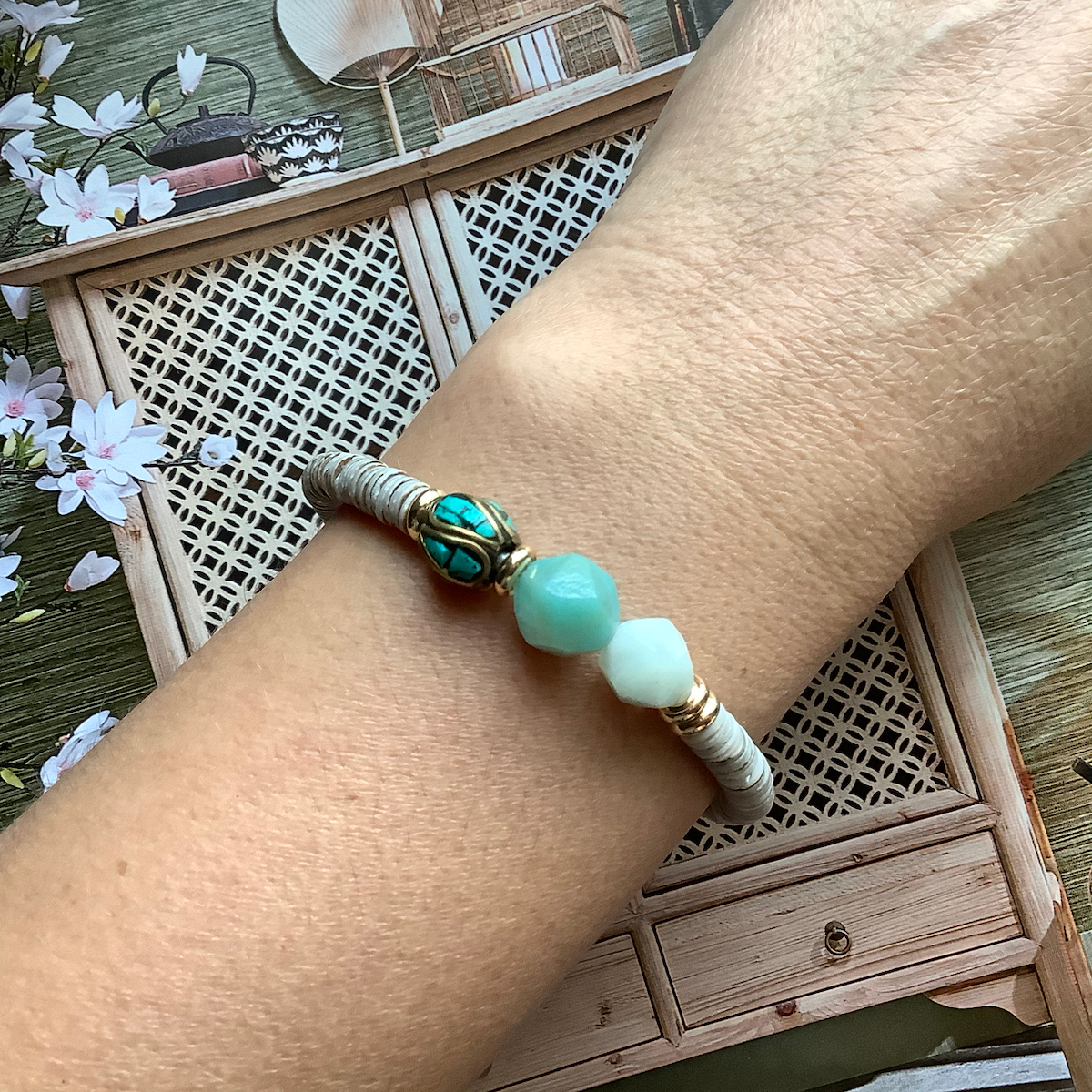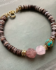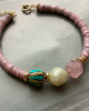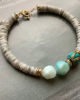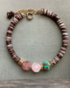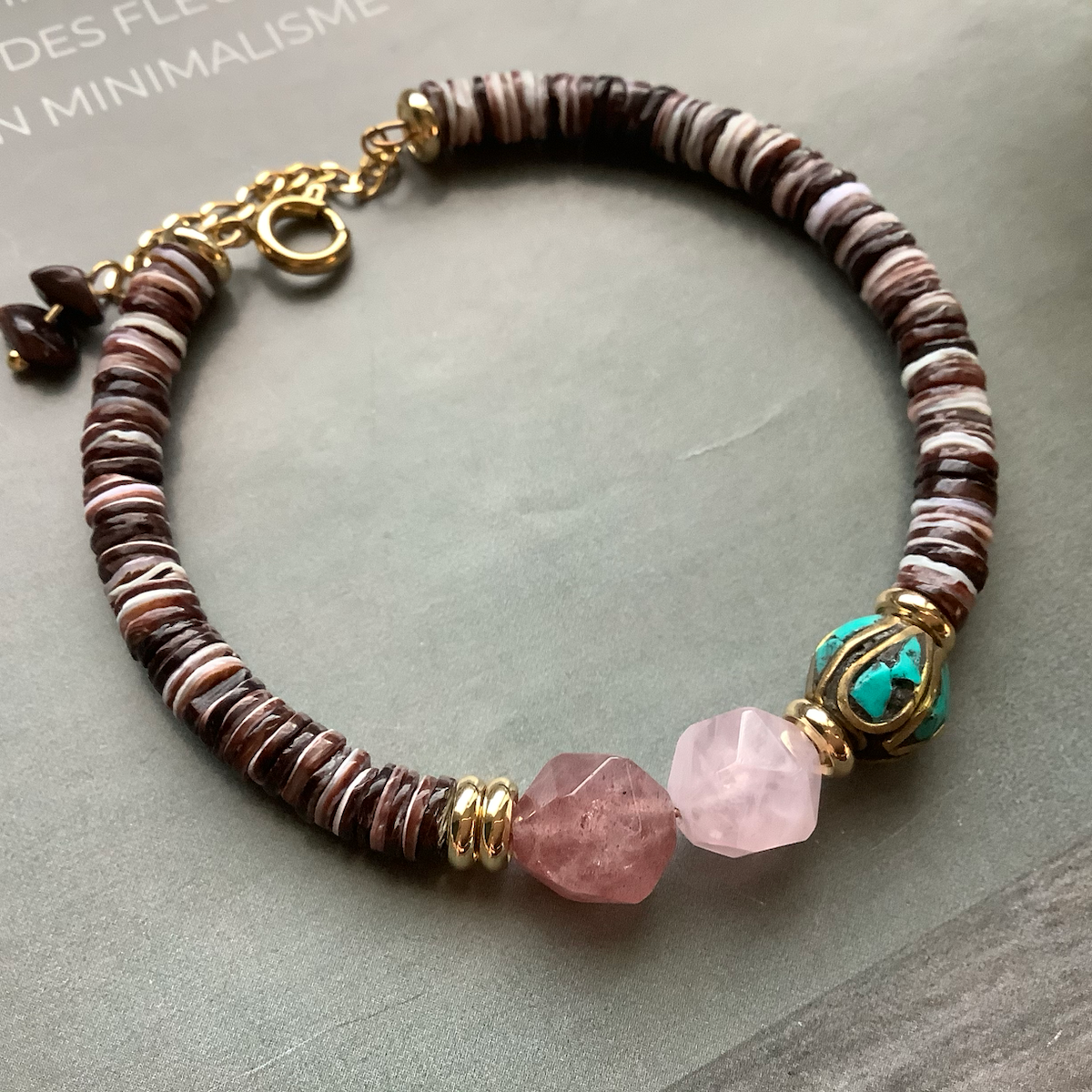 Natural sea shell beads, natural stone Tibet bead, natural gemstones, 24K gold plated spacer beads, stainless steel clasp and extension chain.