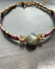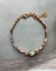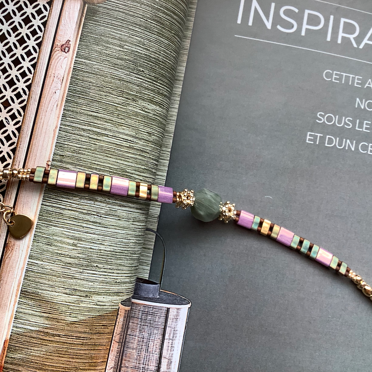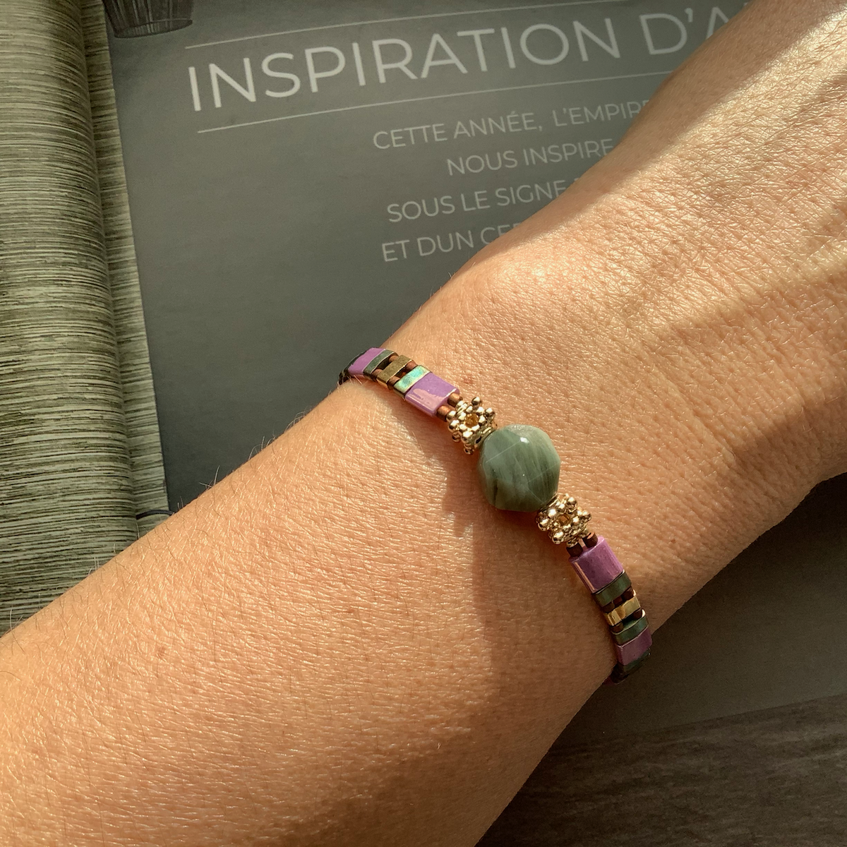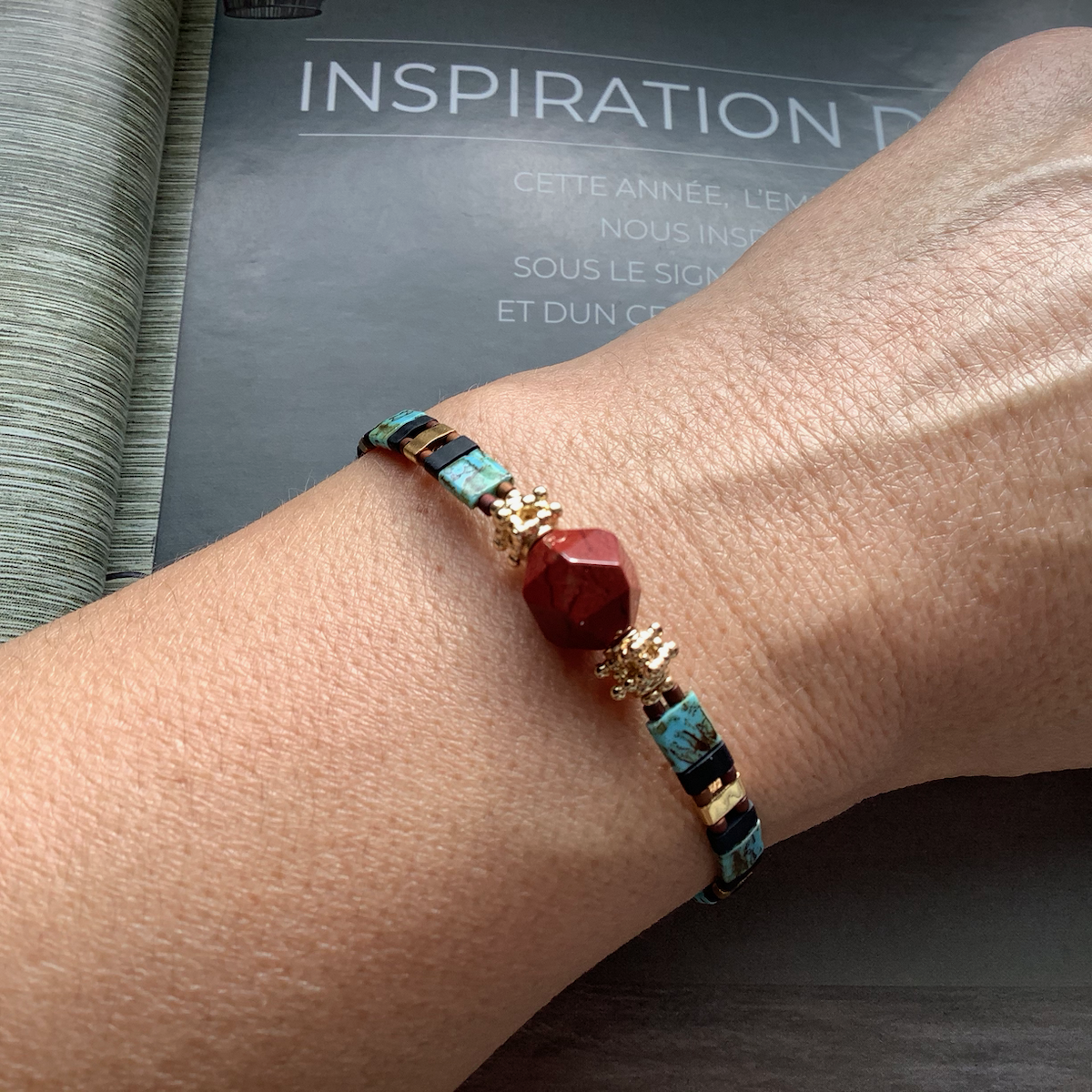 Japanese beads, natural geometric gemstone, 24K gold plated beads spacers, stainless steel clasp and extension chain.